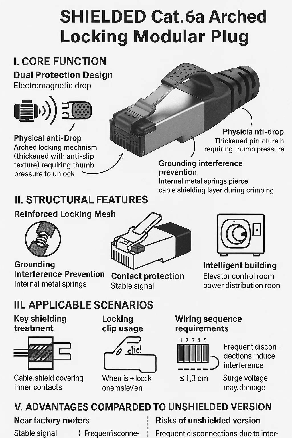 | Scenario | Spina con chiusura ad arco Cat.6a schermata | Rischi derivanti da spine non schermate |