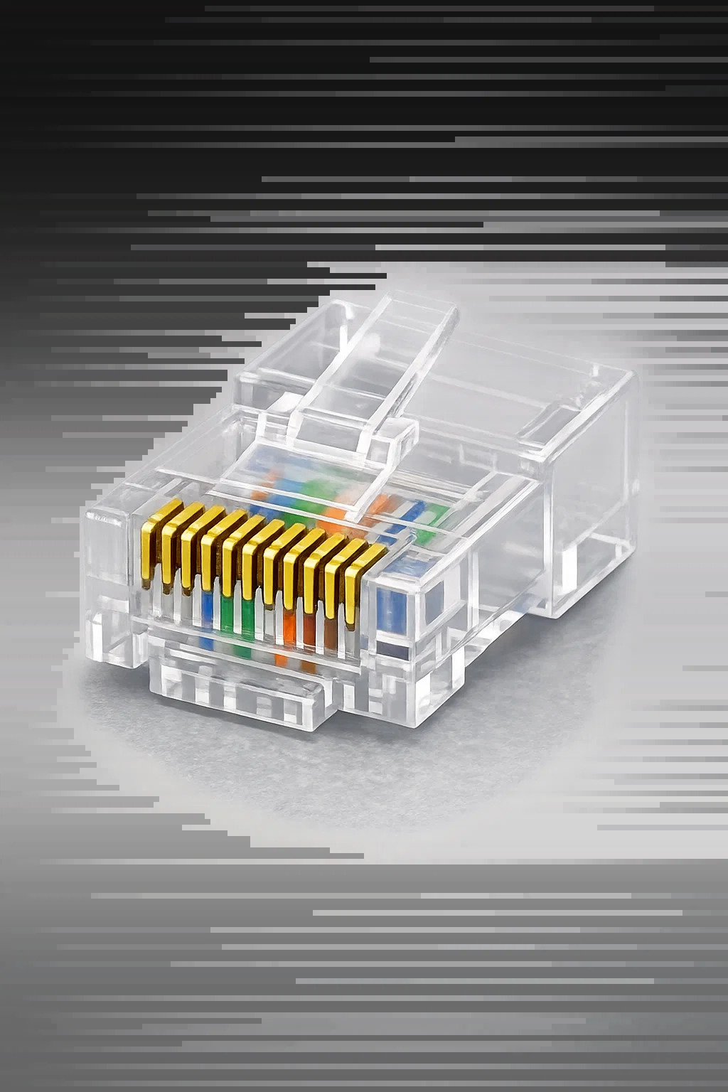 Questo Spina modulare 10P8C Cat.5e non schermata è un connettore per cavo di rete leggermente "speciale". Sebbene sembri molto simile ai connettori di rete che solitamente vediamo sui computer, ha un piccolo dettaglio interessante nella sua costruzione.
