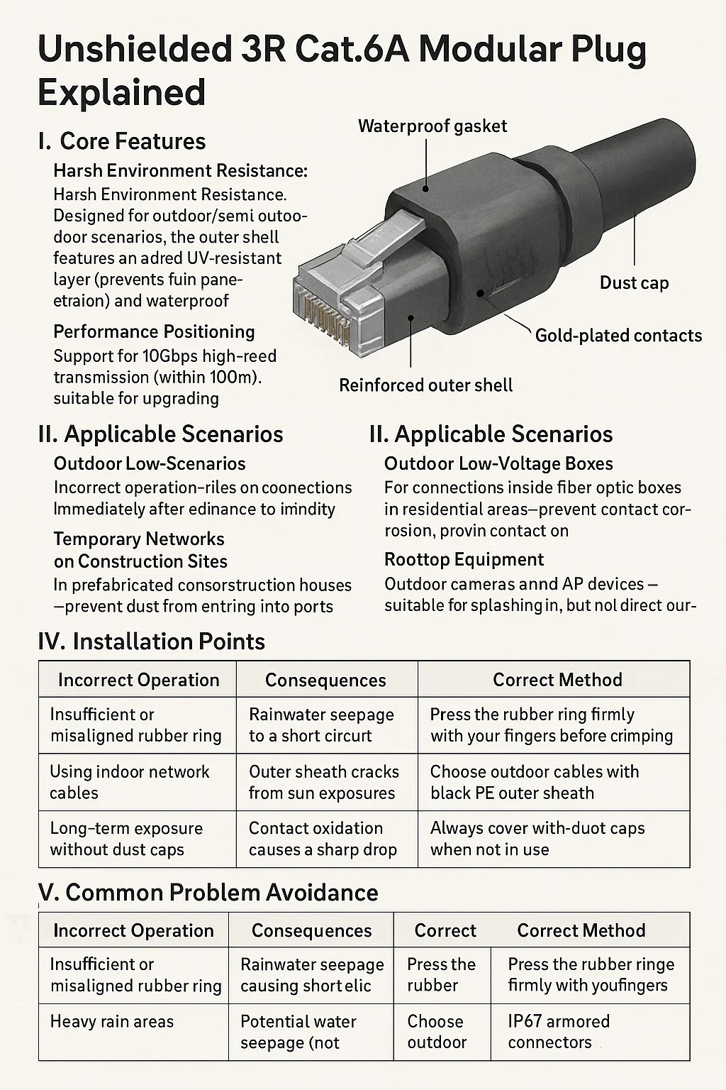 Resistenza agli ambienti difficili: progettato per scenari esterni/semi-esterni, il guscio esterno presenta uno strato aggiuntivo resistente ai raggi UV (previene i danni del sole) e una guarnizione impermeabile (previene la penetrazione della pioggia), che lo rende più resistente agli agenti atmosferici rispetto ai normali connettori.